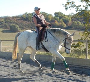 Around that time we were working with a very good Osteopath. Dorothée Breton was particularly sensitive, and we found that some horses found the osteopathic approach less intimidating than the Cranio-Sacral Therapy, but also that the CST was very important for integrating any spinal or pelvic manipulations. Dorothée looked at Xas one time and said that one of the vertebrae at the top of her neck was actually deformed and much smaller than normal. She didn't think it would be safe to manipulate it, but she did think that the work Xas was doing was helping her because the muscle supported her, and correct engagement gradually supples all of the horse's joints, including vertebral ones. Of course I wondered how much of a part the deformity had played in her developing Dummy Foal syndrome at birth. It was another reason to be thankful we had never used any kind of auxiliary aid or physical force to make her 'come round'. Who knows what kind of damage could have been done?