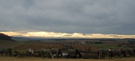 The photo below shows how we are able to feed and hay eleven horses outside in the winter, even when our clay-soil normally makes mud a big problem, because we can access them from a gravel area alongside the lane where we can easily distribute hay and feeds from a trailer/quad.