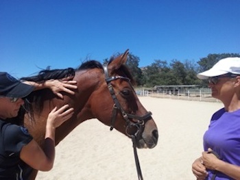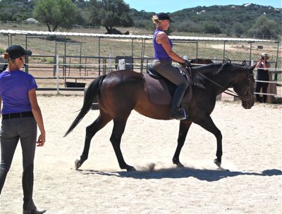 ![]() For this clinic, we were happy to find that the horses were mainly coming from a fairly natural lifestyle, where their owners were aware of their natural requirements to a reasonable degree. Although there was room for improvement to make their daily lives more stimulating, none of the horses were kept on their own or stabled. The vast majority were barefoot with the right conditions for healthy hoof function, helped by the dry California climate. In terms of riding work, we were not in an especially dressage-orientated context, but all the riders were very open to working on the basics of their postural connection with the horses, and we had many wonderful moments where this connection stared to flourish and transform the horses' way of going. Bethany achieving some lovely softening with Galileo Another big plus of Camille and I working together is that we were able to give some presentations where one of us rode and the other explained what was going on (we were fortunate to have been given access to an excellent sound-system to help us do this!).